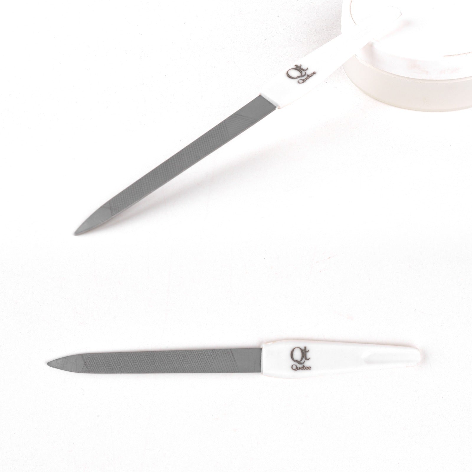 Compact metal nail filer with double-sided grit—fast, gentle, salon-smooth results anywhere.